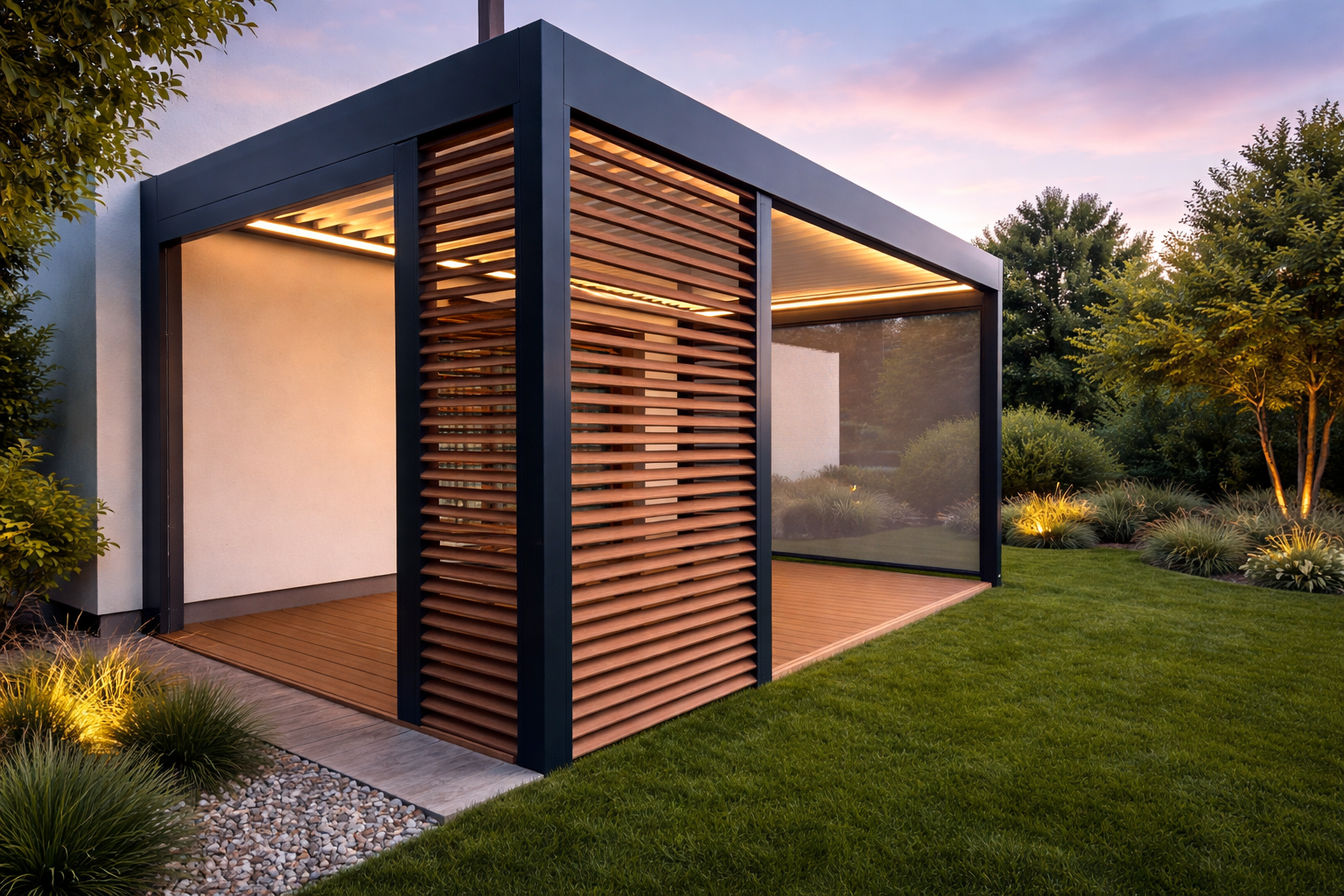 – Altany i pergole zintegrowane z oświetleniem LED, roletami bocznymi, przeszkleniami lub systemami grzewczymi